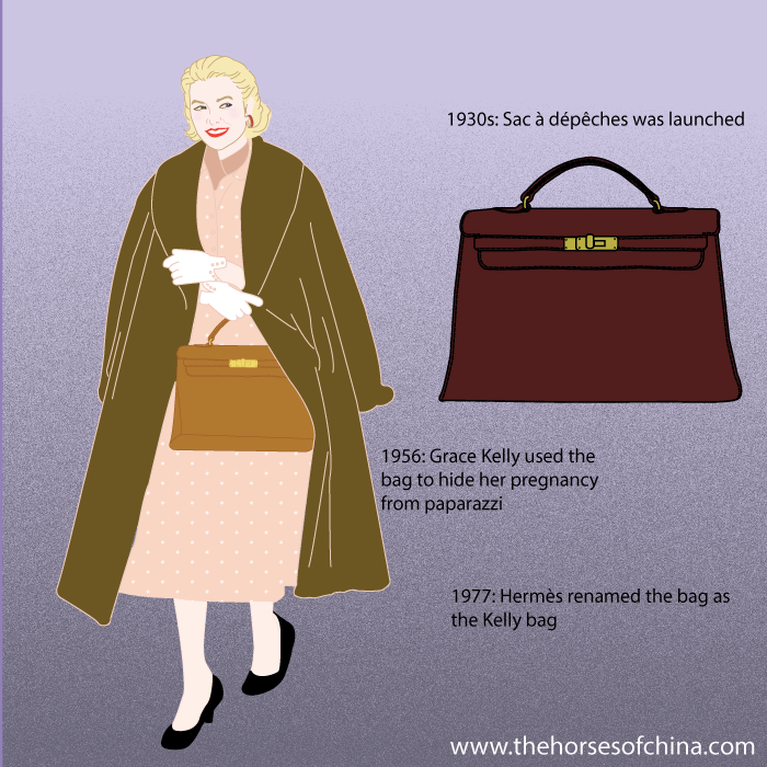 1956: Grace Kelly, the princess of Monaco, used the bag to hide her pregnancy from paparazzi and thus drove sales of the bag to skyrocket.